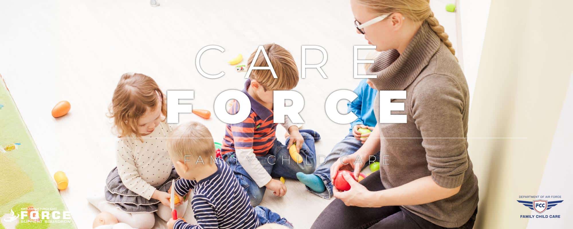 Family Child Care (FCC) provides families with a wonderful alternative to large group childcare! FCC providers are licensed by the Air Force and provide high-quality childcare services in their own homes on base or nearby in the local community. Extensive training and direct oversight of each program assists providers in growing as professionals while offering care in a nurturing home environment.